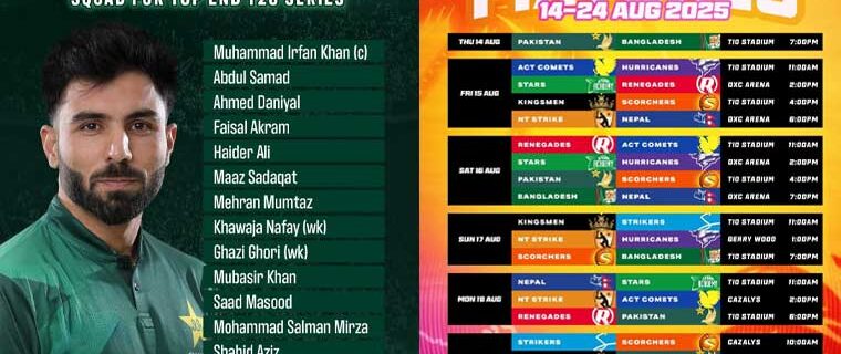 خواجہ نافع اور محمد غازی غوری بطور وکٹ کیپر ٹیم میں شامل ہیں، مبصر خان، سعد مسعود اور محمد سلمان مرزا، شاہد عزیز، عبید شاہ اور یاسر خان بھی سکواڈ کا حصہ ہیں، ٹورنامنٹ 14 سے 24 اگست تک آسٹریلیا کے شہر ڈارون میں کھیلا جائے گا۔