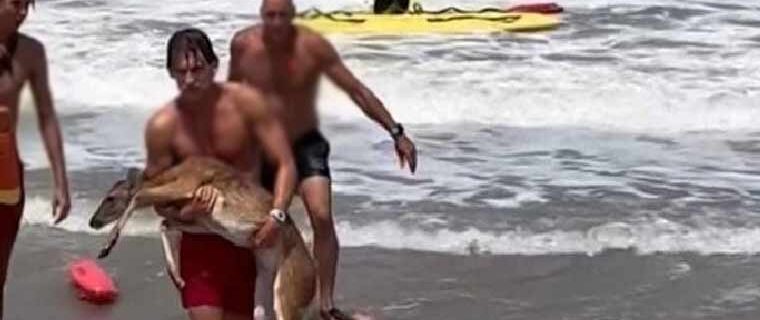 فلوریڈا :(آواز نیوز) کسی جاندار کی جان کی قدر کا یہ مظاہرہ حال ہی میں امریکی ریاست فلوریڈا کے شہر فلیگلے بیچ پر دیکھا گیا جہاں سمندر میں ڈوبتے ایک ہرن کو بظاہر ریسکیو حکام یا کسی اور سے ایسی کوئی امید بھی نہیں تھی اور اس نے کسی کو بلانے کے لیے دہائیاں بھی نہیں دیں لیکن پھر بھی اس کو بخوبی بچا لیا گیا۔لائف گارڈز نے بحر اٹلانٹک میں ایک سفید دم والے ہرن کو بچایا جو شدید طوفانی بارش کے دوران سمندر کی لہروں میں پھنس چکا تھا اور ان سے نکلنے کی تگ و دو کر رہا تھا۔رواں ہفتے چھ جولائی کو فلیگلے بیچ کے سینیئر لائف گارڈ چیس ہنٹر اور ابتدائی سال کے لائف گارڈ لیو پیٹرز نے سمندر میں پھنسے اس ہرن کو دیکھ کر فوراً پانی میں چھلانگ لگائی۔ چیس ہنٹر نے اس ہرن کو ریسکیو بورڈ پر کھینچ لیا اور ان کی مدد سے ایک فائر فائٹر نے ہرن کو محفوظ طریقے سے ساحل تک پہنچادیا۔چیس ہنٹر نے ایک مقامی ٹی وی چینل سے گفتگو کرتے ہوئے کہا کہ میں بس ہرن کو جتنا ہو سکے پکڑ کر رکھے ہوئے تھا، وہ لڑ رہا تھا، وہ بہت بھاری بھی تھا جس کی وجہ سے میں تھک چکا تھا، لیکن میں نے پکا ارادہ کیا ہوا تھا کہ ہم اس ہرن کو کسی بھی طرح ساحل تک پہنچا کر ہی رہیں گے۔ان کا مزید کہنا تھا کہ خوش قسمتی سے ہرن کو ساحل پر واپس لانے کے بعد وہ خود چلنے کے قابل ہو گیا اور اسے ساحل کے قریب جنگل میں چھوڑ دیا گیا۔