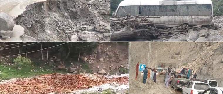 دوسری جانب ترجمان این ڈی ایم اے کے مطابق بابوسر ٹاپ روڈ مکمل طور پر بند ہے جبکہ قراقرم ہائی وے کے لال پہاڑی اور تتھا پانی کے مقامات پر 10 سے 15 گاڑیاں نالوں اور لینڈ سلائیڈنگ والے علاقوں میں پھنسی ہوئی ہیں، تھک نالہ میں 4 افراد بہہ گئے جن میں سے 2 کی نعشیں اور 2 کو بحفاظت نکال لیا گیا، جبکہ لاپتہ افراد کی تلاش کیلئے ریسکیو آپریشن جاری ہے، پاکستان فوج بھی آپریشن میں حصہ لے رہی ہے۔ادھر وادی نیلم میں بھی کلاؤڈ برسٹ نے تباہی مچا دی، مدین میں مکان لینڈ سلائیڈنگ کی زد میں آ گیا، ملبے تلے دب کر 3 بچے چل بسے جبکہ ماں زخمی ہے، جبکہ سوات میں 2 بچے برساتی نالے میں بہہ کر جاں بحق ہوگئے۔