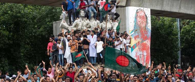 ڈھاکہ (خصوصی رپورٹ):بنگلہ دیش میں طویل عرصہ اقتدار میں رہنے والی سابق وزیراعظم حسینہ واجد کی حکومت کے خاتمے کو ایک سال مکمل ہو گیا، جس پر ملک بھر میں مختلف حلقوں کی جانب سے قومی جشن منایا گیا۔شہریوں نے ریلیاں نکالیں، مٹھائیاں تقسیم کیں، اور سوشل میڈیا پر “جمہوریت کی واپسی” کے نعرے ٹاپ ٹرینڈ بنے۔ مختلف حلقوں کا کہنا ہے کہ گزشتہ حکومت کے دور میں جمہوری ادارے، میڈیا، اور اختلاف رائے دباؤ کا شکار تھے۔سیاسی تجزیہ کاروں کے مطابق، یہ دن بنگلہ دیش میں جمہوری تحریک کی فتح کے طور پر یاد رکھا جائے گا۔ اپوزیشن رہنماؤں نے اسے “نئے دور کا آغاز” قرار دیا۔تاہم سابق حکومتی جماعت عوامی لیگ نے اس جشن کو سیاسی ڈرامہ قرار دے کر مسترد کر دیا، اور کہا کہ “ملک کو انتشار کی طرف لے جایا جا رہا ہے”۔