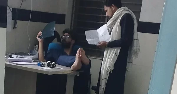 ذرائع کے مطابق آرتھوپیڈک وارڈ میں تعینات ڈاکٹر شایان پر الزام عائد کیا گیا ہے کہ انہوں نے مریض کا معائنہ انتہائی غیر مناسب انداز میں کیا۔ وائرل ہونے والی تصویر میں دیکھا جا سکتا ہے کہ ڈاکٹر سرکاری دفتر کو نجی کمرے کے طور پر استعمال کرتے ہوئے کرسی پر بیٹھے میز پر پاؤں رکھ کر مریض کا معائنہ کر رہے ہیں۔
