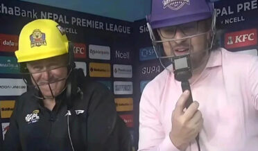 نیپال پریمیئر لیگ میں انوکھا منظر: کمنٹری باکس کی کھڑکی ٹوٹنے پر کمنٹیٹرز نے ہیلمٹ پہن لیا